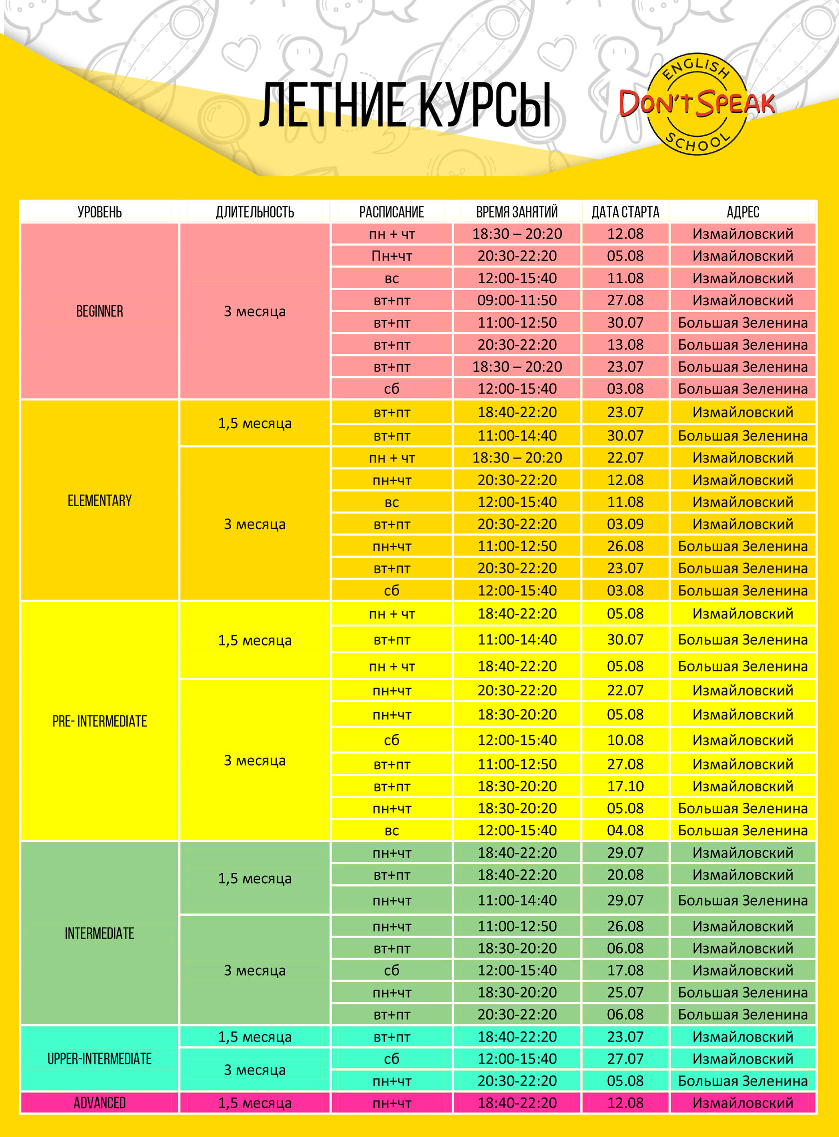 Летние интенсивы английского языка - продолжительность 1,5 месяца.